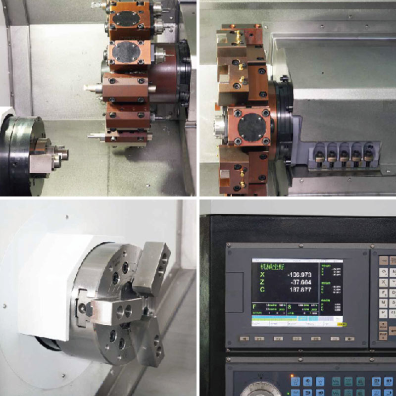 Das Gerät ist mit einem 12-Station-Stromturm ausgestattet, der eine Vielzahl von Werkzeugkonfigurationen unterstützt, sodass die Verarbeitung verschiedener Prozesse effizient abgeschlossen, die Zeit der Werkzeugänderung reduziert und die allgemeine Produktionseffizienz verbessert wird. Die hohe Stabilität des Stromturms gewährleistet auch die Zuverlässigkeit während der langfristigen kontinuierlichen Verarbeitung.